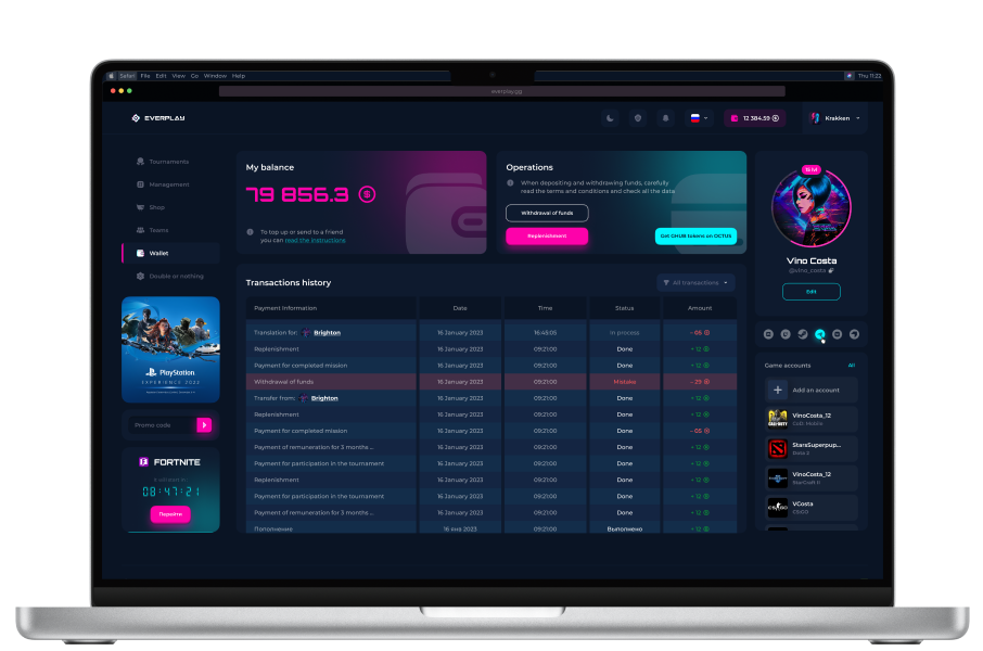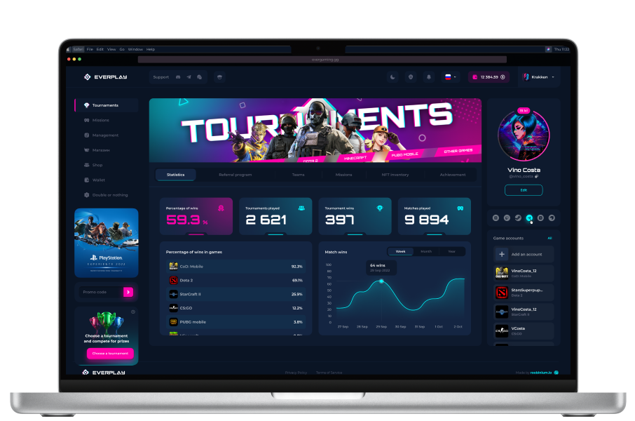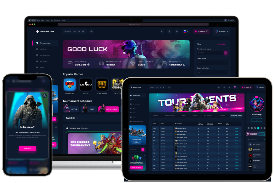 This means that you are not limited to any sports disciplines or gaming platforms. EVERPLAY is fully adaptable to any online games for mobile, PC and consoles