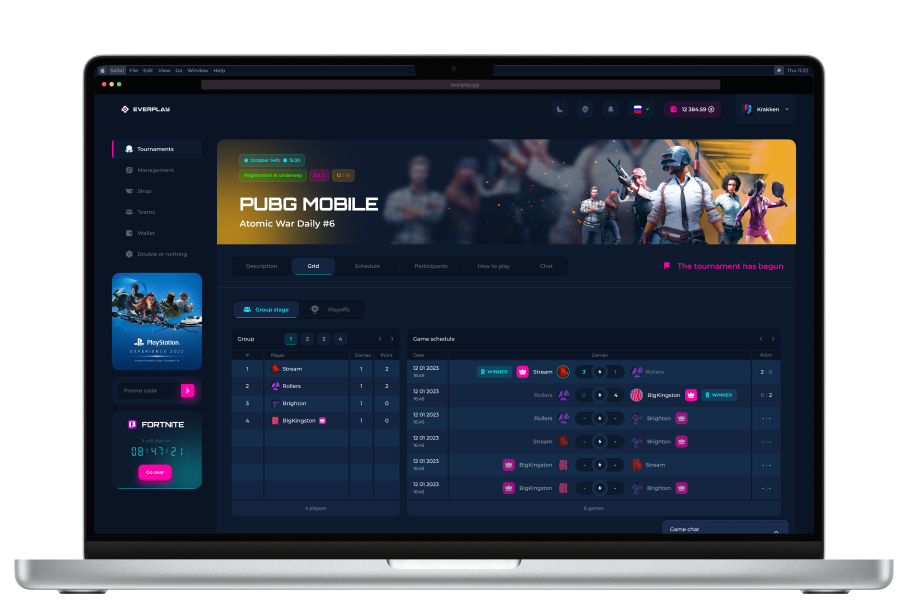 We have our own tournament platform with many opportunities for holding esports competitions and interacting with the audience