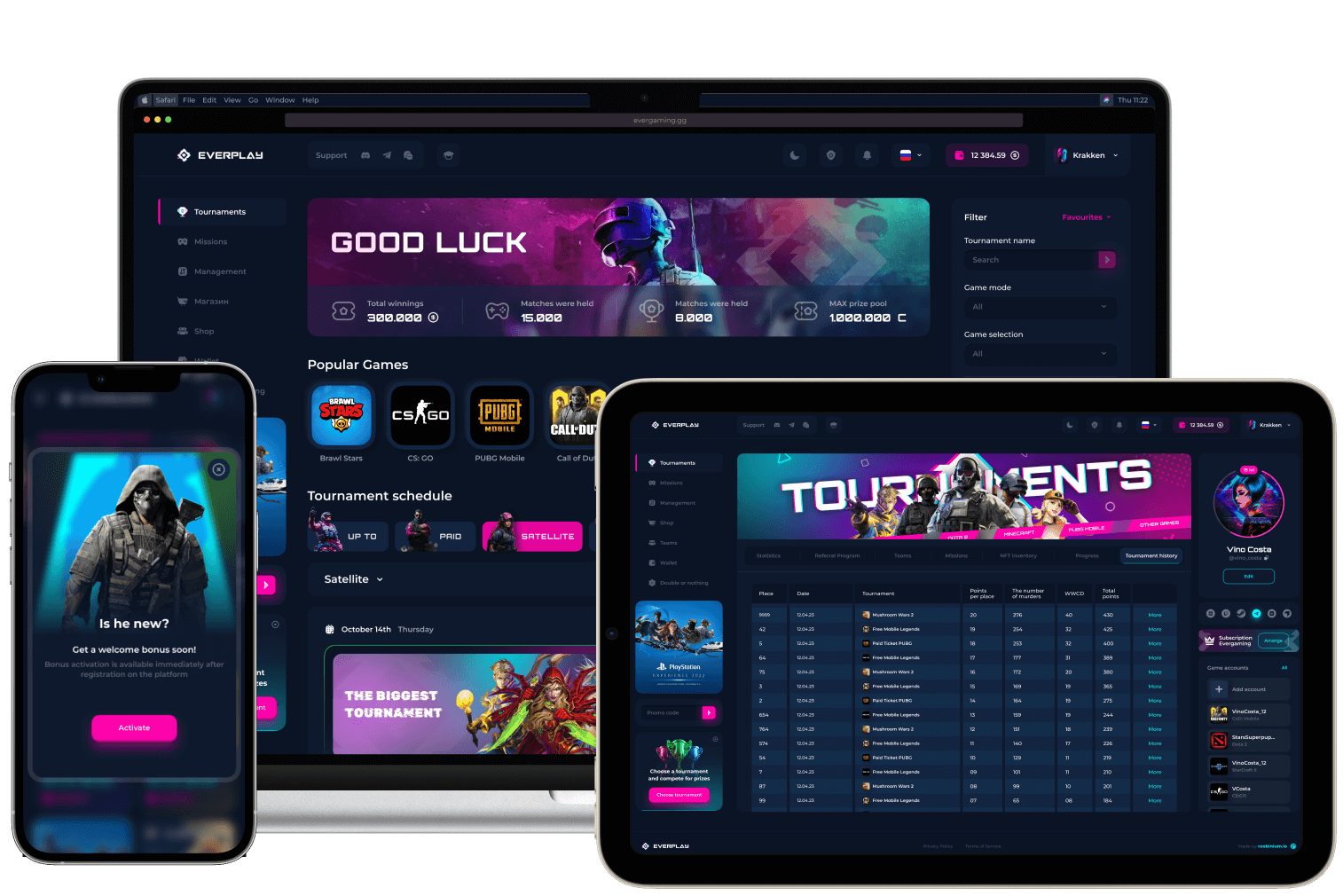 Our own platform that combines all the necessary components to provide a complete gaming experience for mobile game players. Popular mobile games, quick tournaments, instant prizes, leaderboards, missions, and much more.